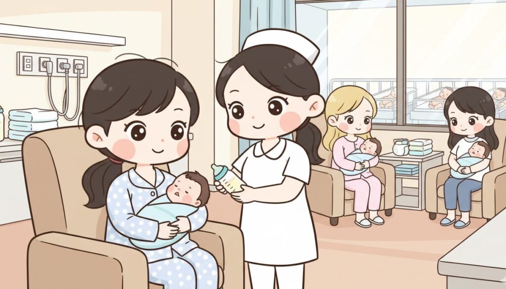 - 入院期間: 初産婦で4日間(通常5日間のところ1日早く退院)